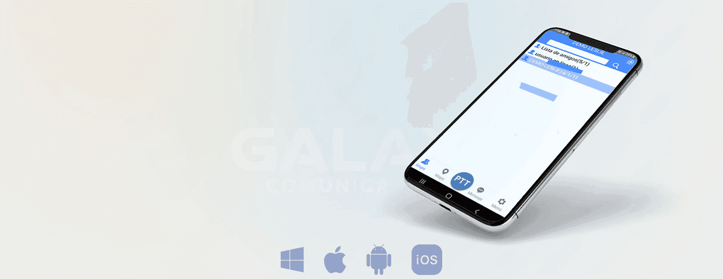 Comunicación tipo Push-to-Talk (PTT) con un clic desde la central a uno o varios usuarios. Compatible con radios PoC y aplicaciones móviles Galaxy.