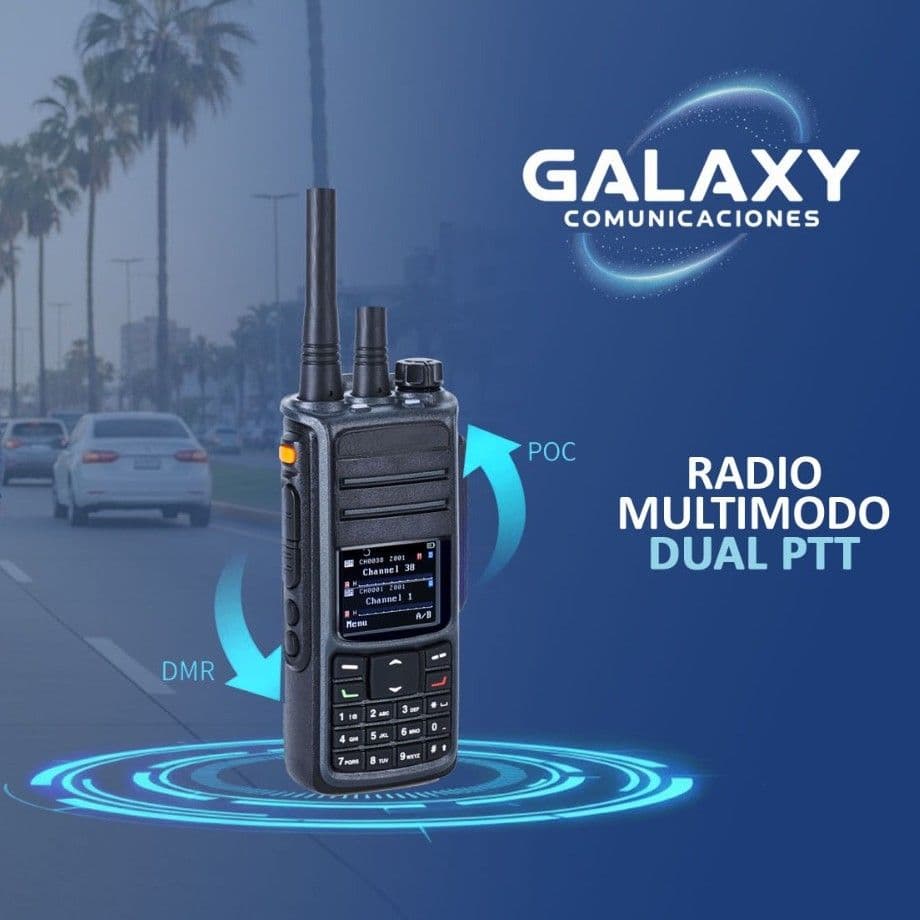 Cuenta con dos botones PTT para el sistema Poc y otro para el sistema DMR
